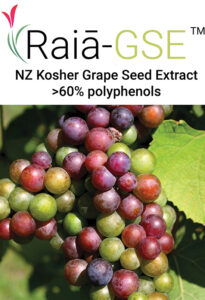 Raiā-GSE is a Kosher Certified New Zealand Grape Seed Extract <60 percent polyphenols, which some may know is a major feat given Kashurat law.